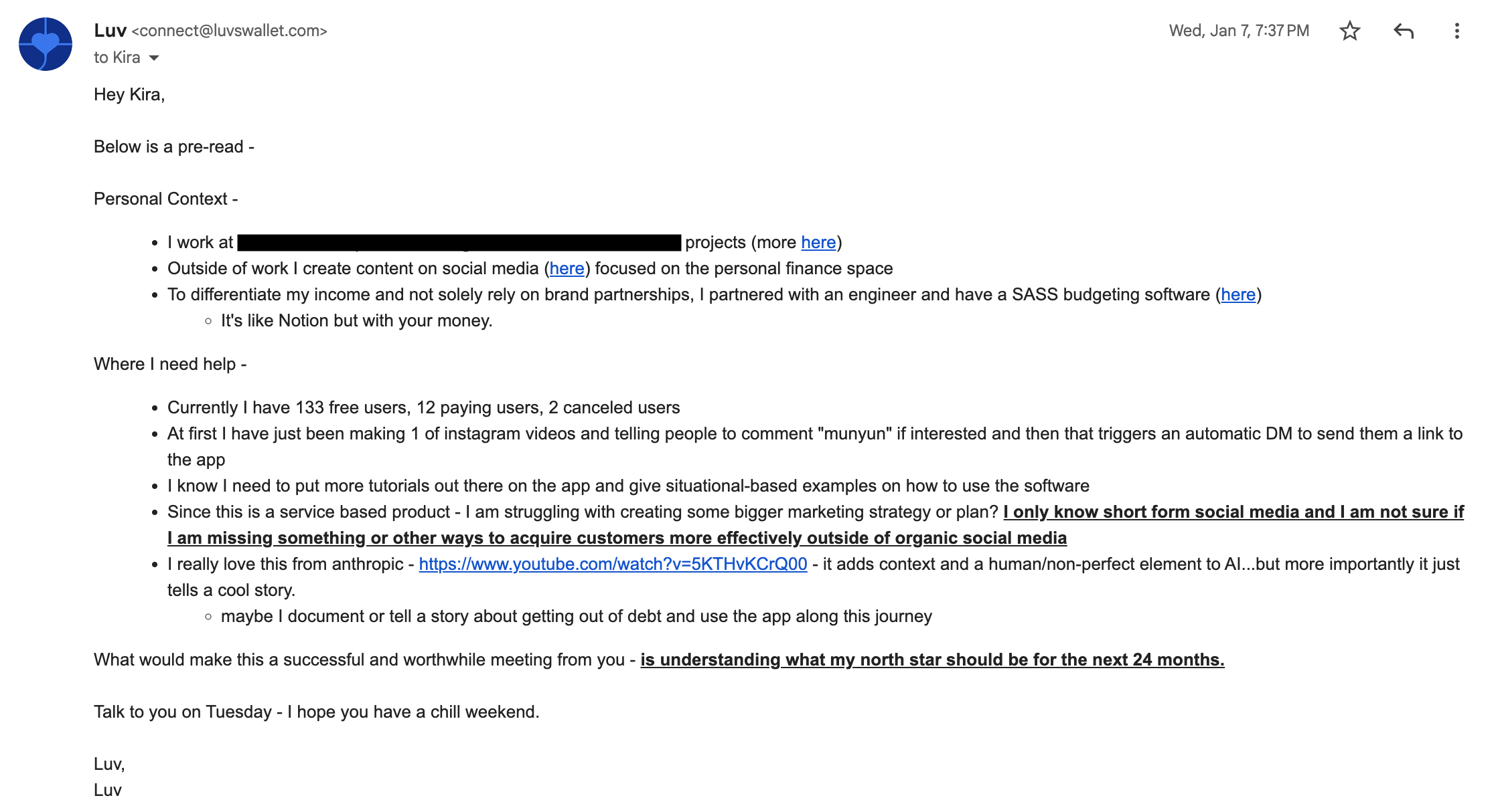 Before the call, I sent over my questions and gave her context on the app. And the biggest thing I walked away with was this: I didn’t know who my ideal customer was.