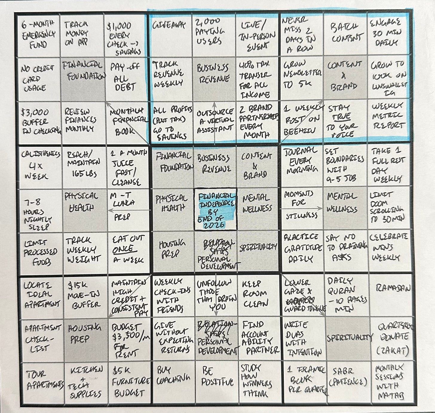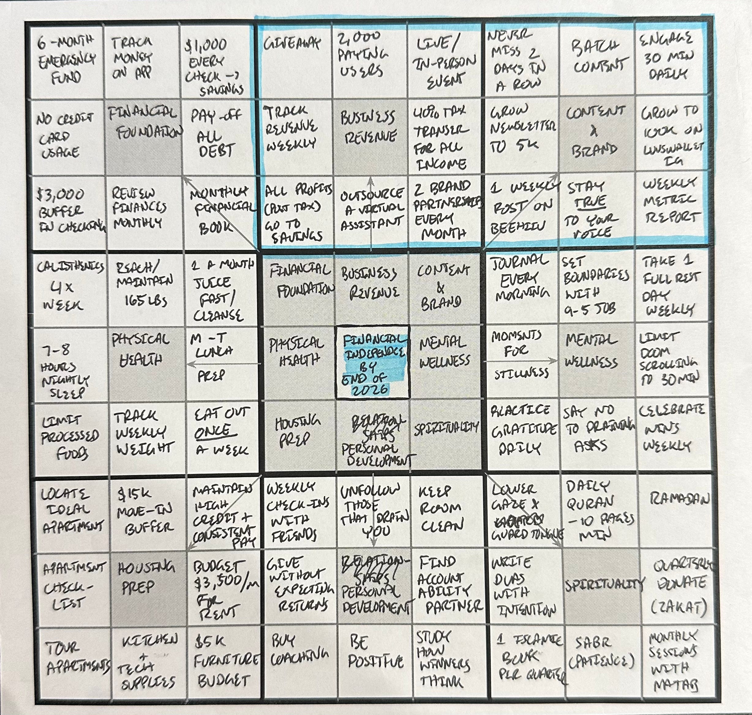 Write out all 8 pillars. Even the ones you won’t focus on this year. It helps you see the full picture of the life you’re building toward.