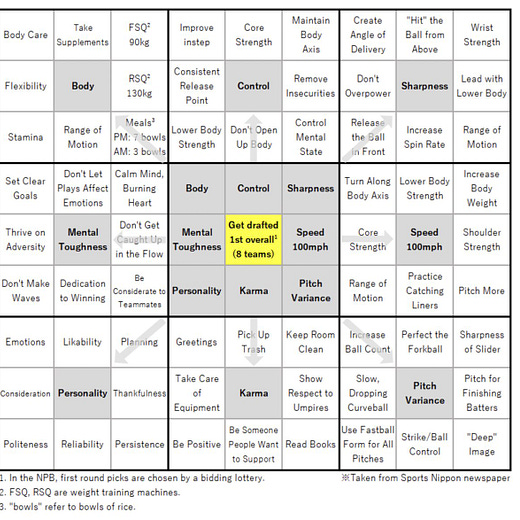 I came across this post on X about how Shohei Ohtani became so successful. In high school, he used something called the Harada Method. He filled in his goals then and used the same framework all the way to the pros.