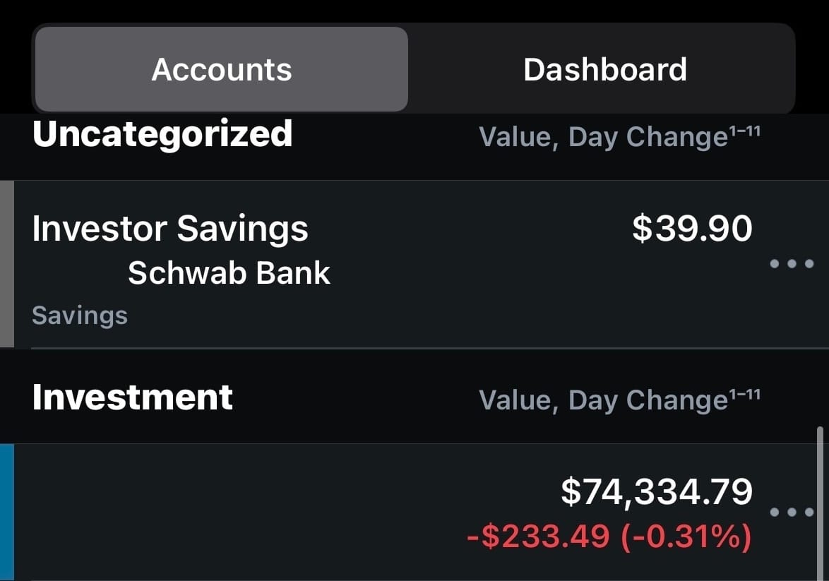 as you can see here, I really do not save money…lol. the bottom account is one of my investment accounts I have been contributing to.