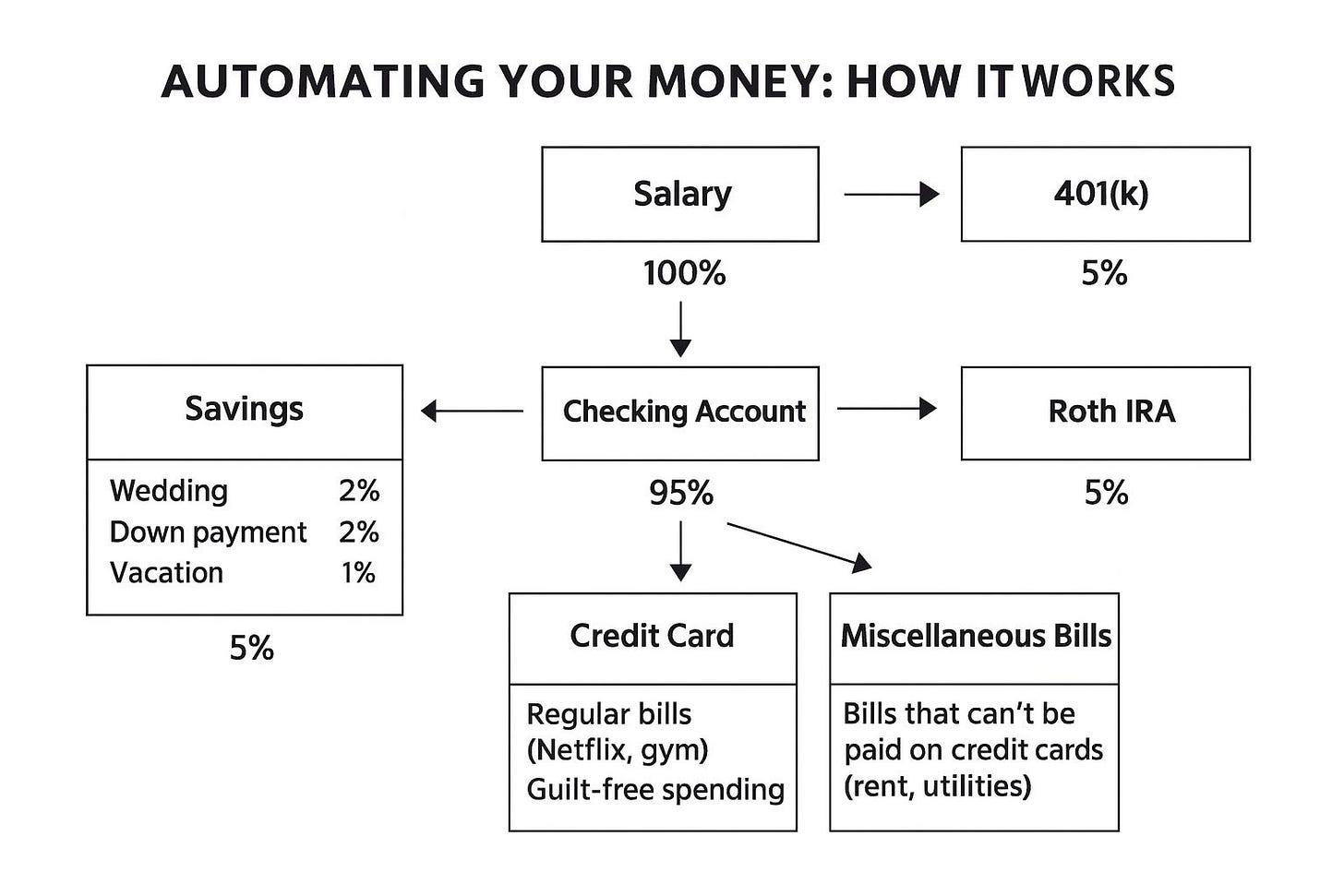 pretty simple example chart that shows how to automate your money when you setup your direct deposit.