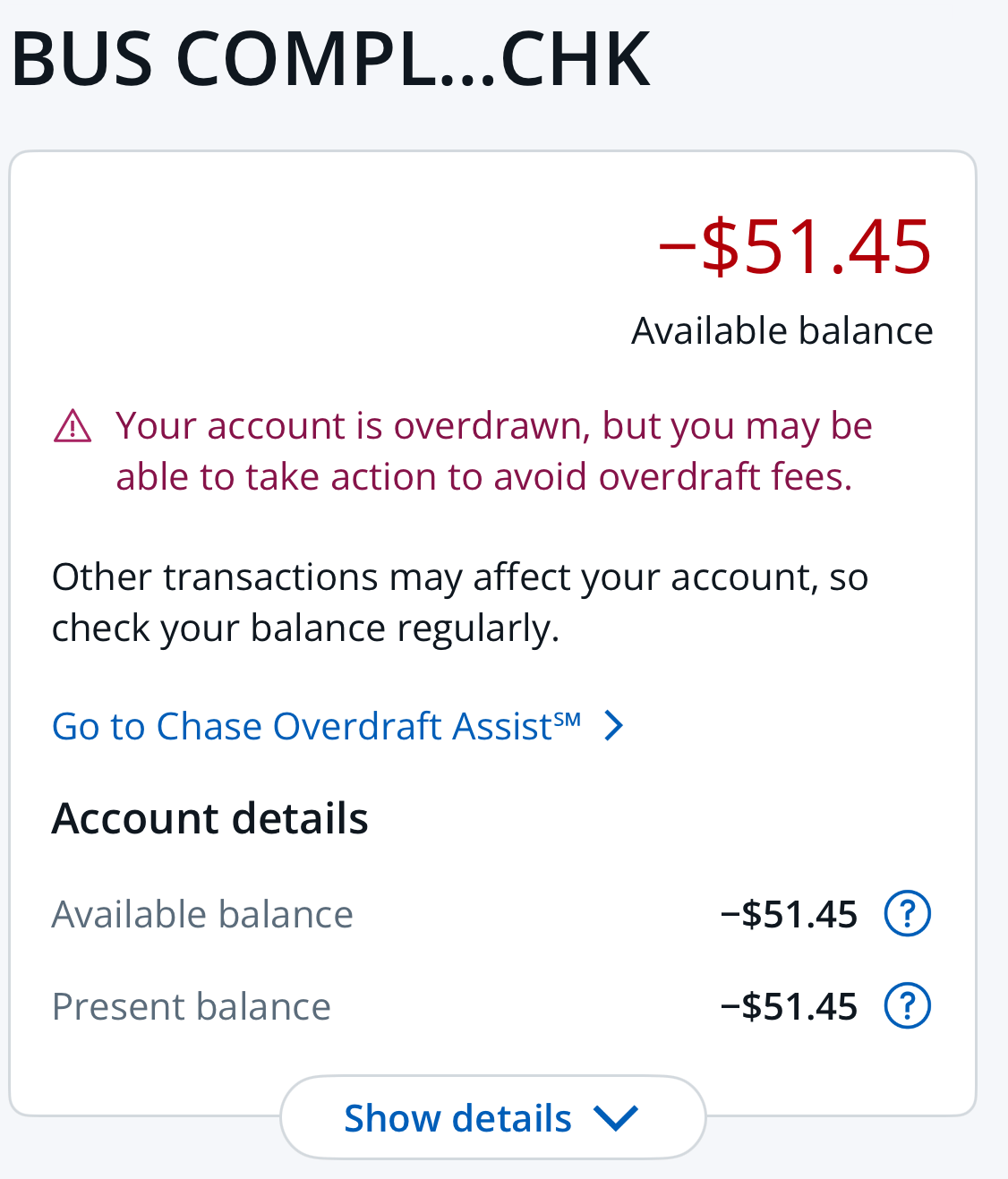 multiple times during the year, my business bank account went in the negative.