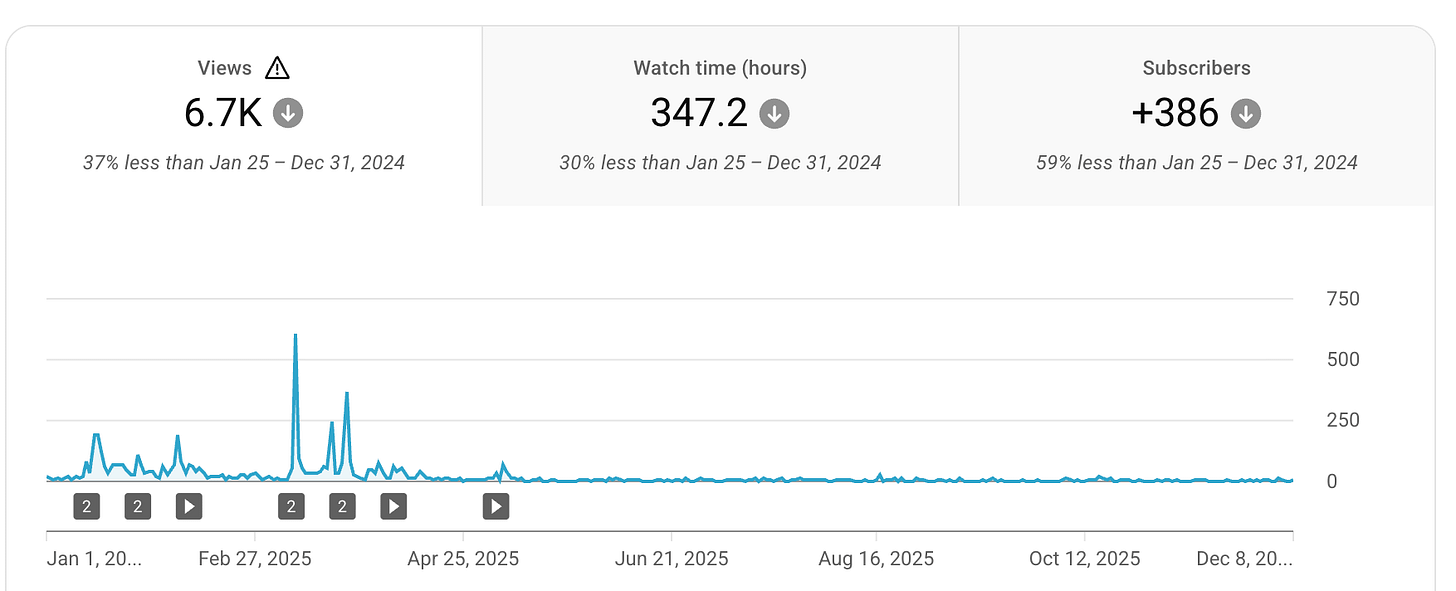 I ended 2024 with momentum on YouTube. Strong videos, strong engagement, consistent posts. That carried into early 2025. But over the course of the year, I dwindled.