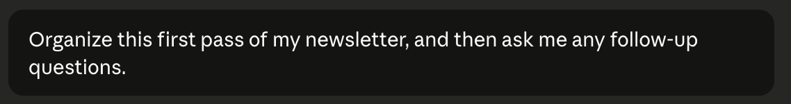 I use AI to write all of my articles. Instead of me having to write out these newsletters from scratch, I talk through it (with wisprflow), have AI polish it up, then do two passes of editing to add my tone and voice.